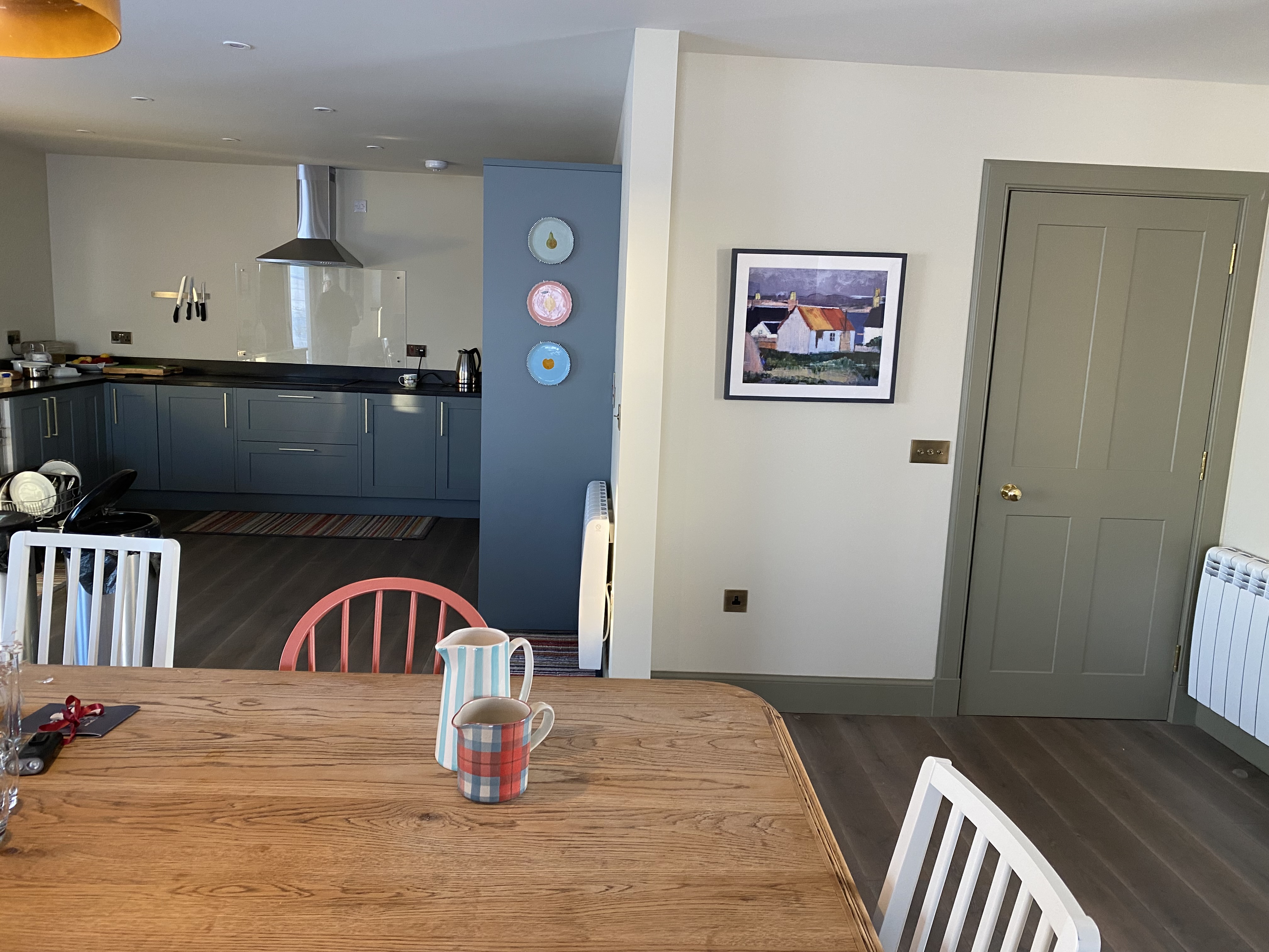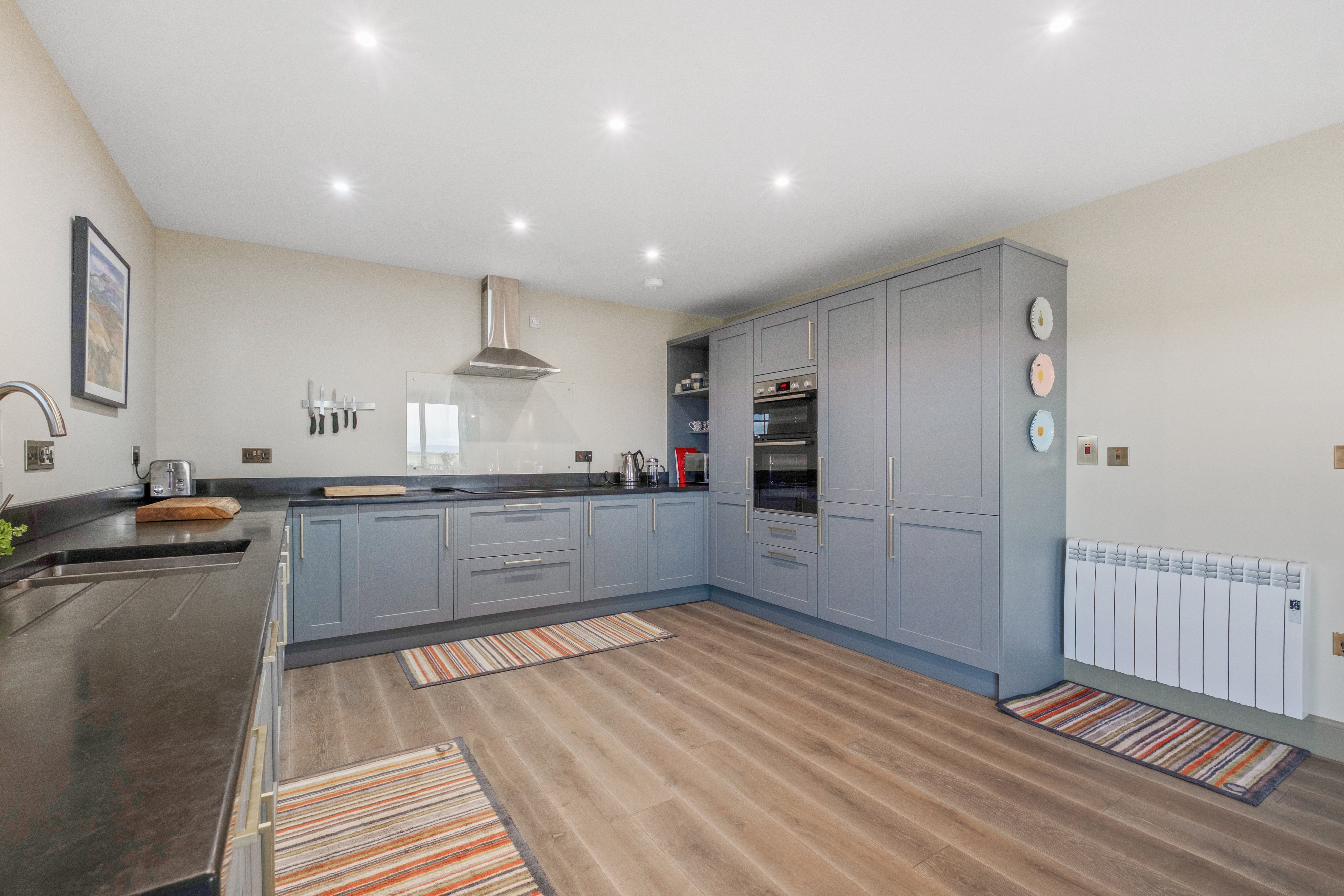 The kitchen has an induction hob and double oven. There is a utility room off the boot room with washing machine and tumble dryer. There is good broadband speed with an average of 35Mbps and a 52-inch television in the living area.
